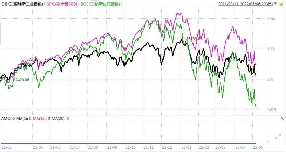 道指本周走出了2020年以来的最佳单日表现和最大单日跌幅,纳指周线五连阴,为2012年来的最长周线连跌纪录,标普500开年来表现史上表现第四差,仅次于19世纪30年代和70年代市场大崩盘时期。