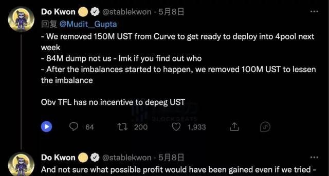 因此在5月8日凌晨,LFG从UST-3Crv池中撤走了1.5亿美元的UST流动性。有心人注意到,若想要此时耗干UST的流动性只需要3亿美元左右。