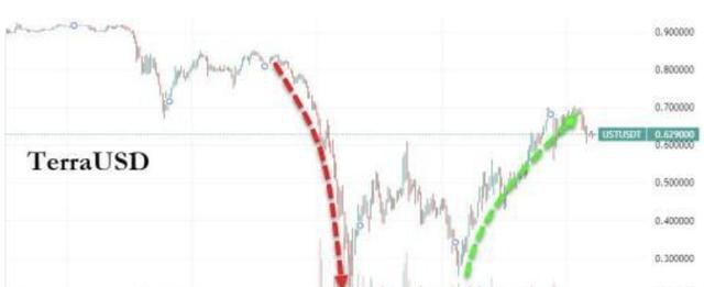 故事进展到这时,仍可被成为UST的“小型脱钩事件”。如果就此稳住不继续向前,最多也就是加密货币发展史上出现的小小水花,“出圈”的可能性相当小。