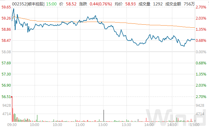 受利好消息影响,公司股价高开后震荡走低。截至收盘,股价涨0.76%,报收于58.52元。