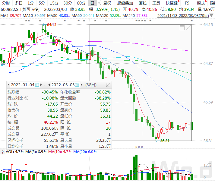 事实上,自去年年初120元的高位算起,一年时间公司股价累计跌幅超过50%。