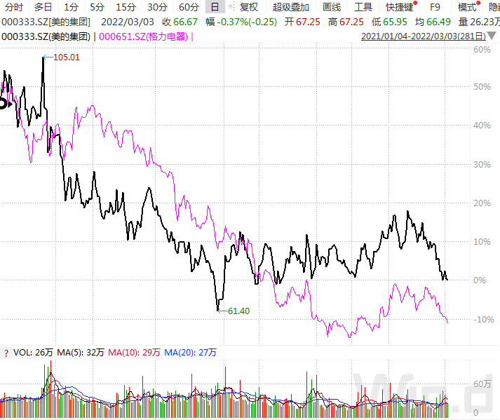 美的、格力两家电龙头合计回购金额甚至超过150亿元。虽然两家公司回购金额位居上市公前列,但两家公司股价却跌跌不休,当前股价仍处近年来底部区域。