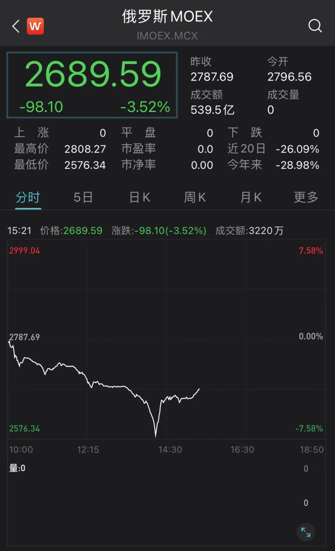 因布查市平民死亡事件,欧洲可能进一步加大对俄制裁,引发市场担忧,俄罗斯MOEX指数盘中大跌超7%,截至发稿跌幅收窄,但仍跌超3%。